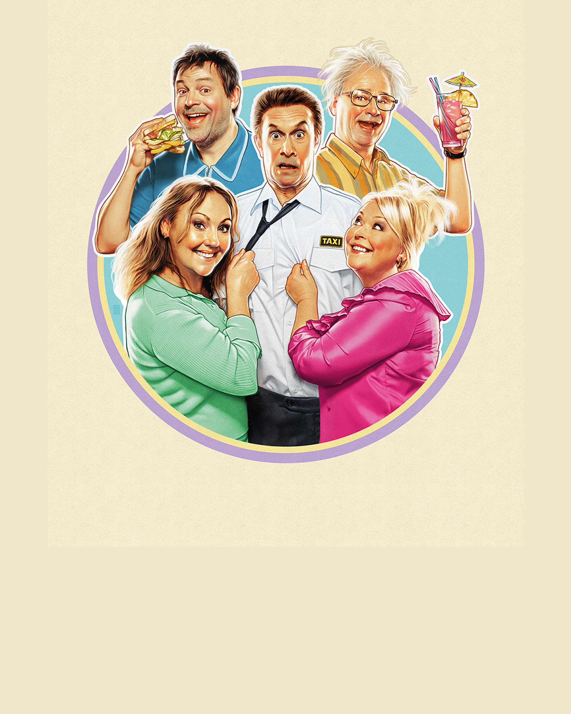 Ola Forssmed - Per-Arne Nilsson, taxichaufför Robert Gustafsson - Herman, Görans pappa Eric Ericson - Göran Blom, inneboende Hanna Hedlund - Lotta Nilsson, gift med Per-Arne Martina Sundén - Kristina Nilsson, gift med Per-Arne Hjalmar Freij - Max Nilsson, Per-Arne och Kristinas son Mia Nilsson, Per-Arne och Lottas dotter: ännu ej rollsatt